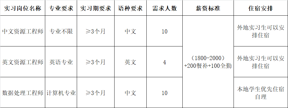 (一)實習崗位主要面向2022年畢業(yè)的在校大學生,具體崗位要求如下: